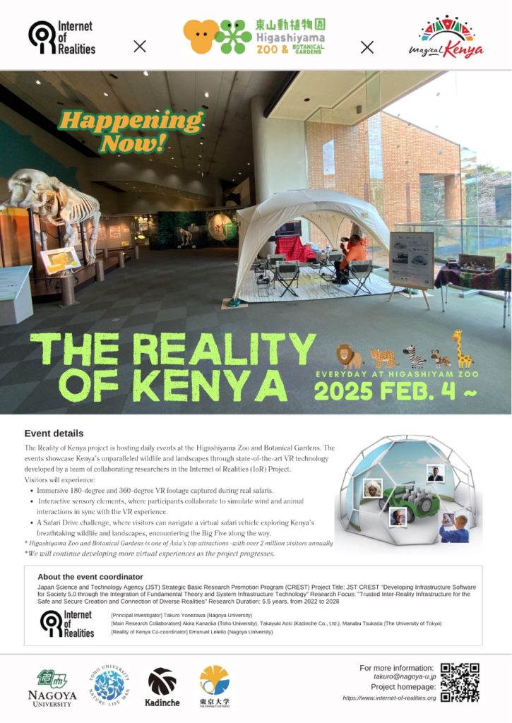 This initiative is part of The Internet of Realities (IoR) Project, funded by the Japan Science and Technology Agency (JST) CREST (Core Research for Evolutional Science and Technology) Program, under the research focus: “Trusted Inter-Reality Infrastructure for the Safe and Secure Creation and Connection of Diverse Realities.” This test phase is made possible through a partnership with the Higashiyama Zoo and Botanical Gardens and the Kenya Tourism Board.