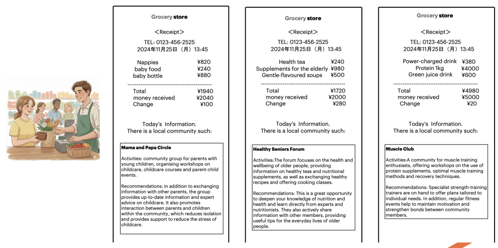 The second examples looked at a simple but powerful intervention whereby the Point of sale (POS) terminals in local shops also provided information on local community groups that were active.