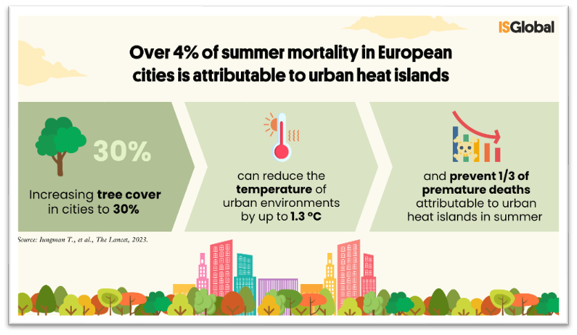 This phenomena is caused by a complex interplay of many factors – the physical topography of the city, the types and size of buildings, roads and associated traffic and green space. Sadly, it has been estimated that 4% of summer deaths in European cities is caused by such heat islands.